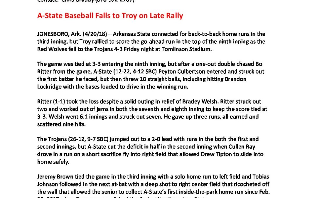 A-State-Baseball-Falls-to-Troy-on-Late-Rally by | Apr 20, 2018 | 0 commentsSubmit a Comment Cancel replyYour email address will not be published. Required fields are marked *Comment *Name * Email * Website