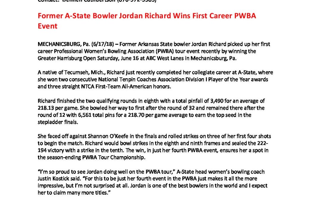 Former-A-State-Bowler-Jordan-Richard-Wins-First-Career-PWBA-Event by | Jun 17, 2018 | 0 commentsSubmit a Comment Cancel replyYour email address will not be published. Required fields are marked *Comment *Name * Email * Website