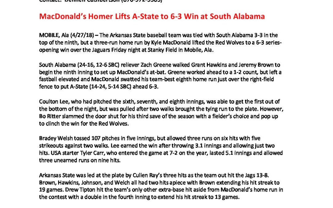 MacDonalds-Homer-Lifts-A-State-to-6-3-Win-at-South-Alabama by | Apr 27, 2018 | 0 commentsSubmit a Comment Cancel replyYour email address will not be published. Required fields are marked *Comment *Name * Email * Website
