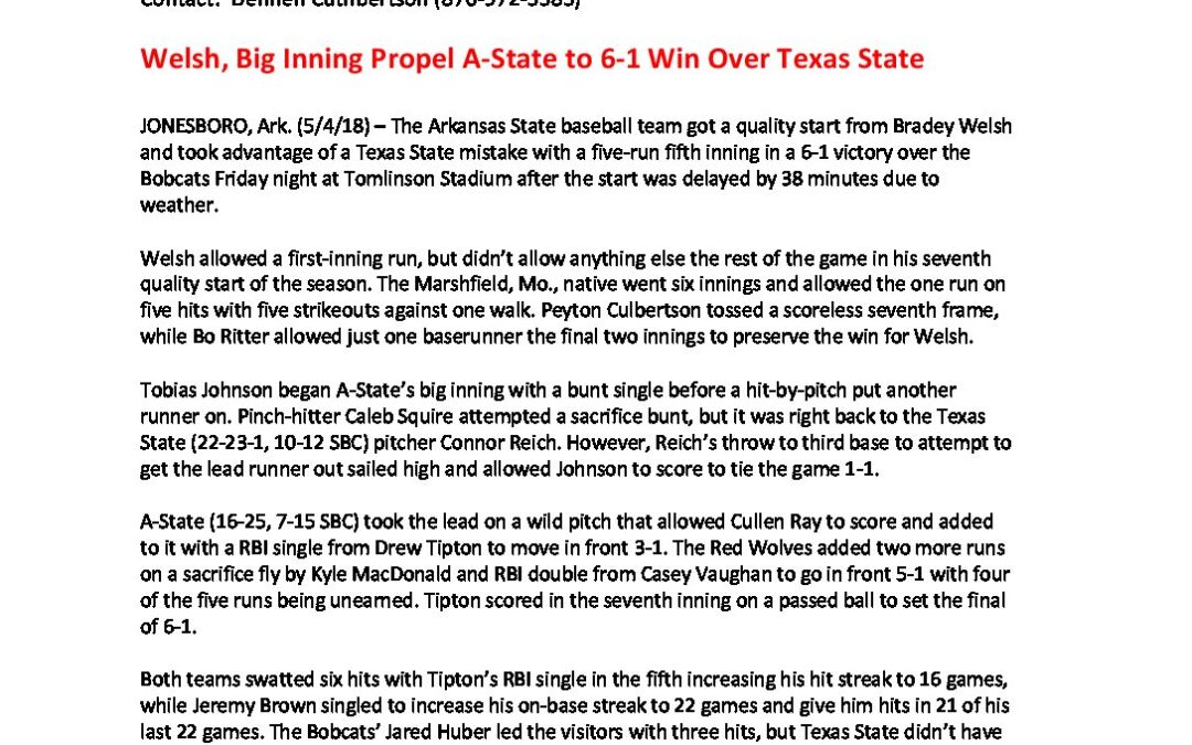 Welsh-Big-Inning-Propel-A-State-to-6-1-Win-Over-Texas-State by | May 4, 2018 | 0 commentsSubmit a Comment Cancel replyYour email address will not be published. Required fields are marked *Comment *Name * Email * Website